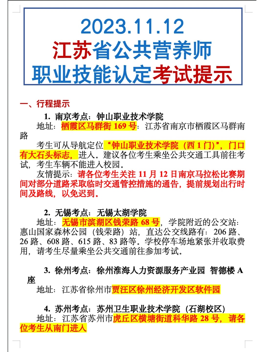 必看👀2023年11.12江苏公共营养师考试提示‼️